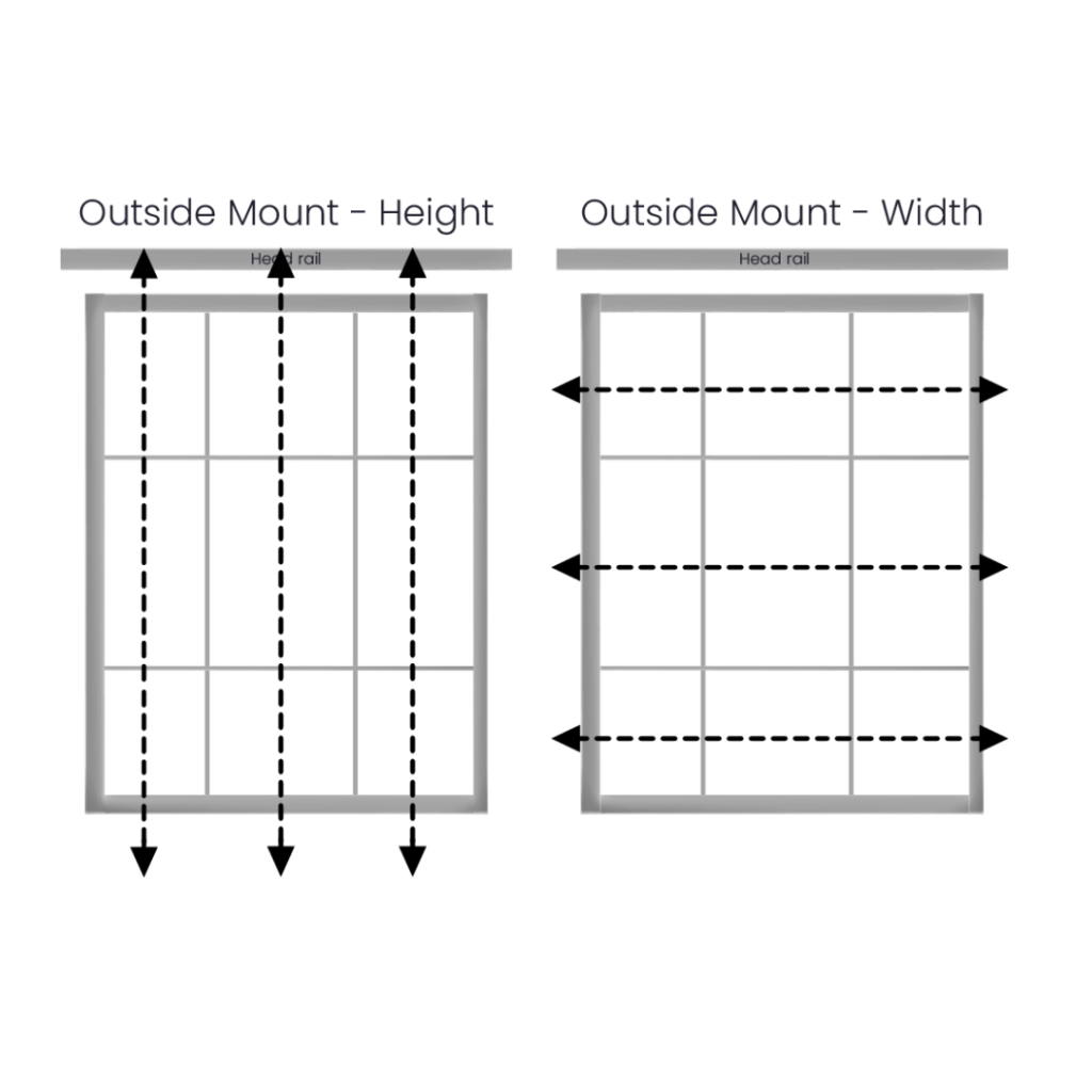 • Width: Measure the width, including the coverage you would like on each side of the window. We recommend an overlap of at least 100mm for light control and privacy.