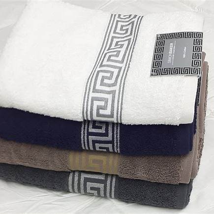 Adorned with the iconic Greek key pattern, this bath sheet adds a touch of classical artistry to your bathroom decor. The intricate design not only enhances its aesthetic appeal but also pays homage to a rich cultural heritage.