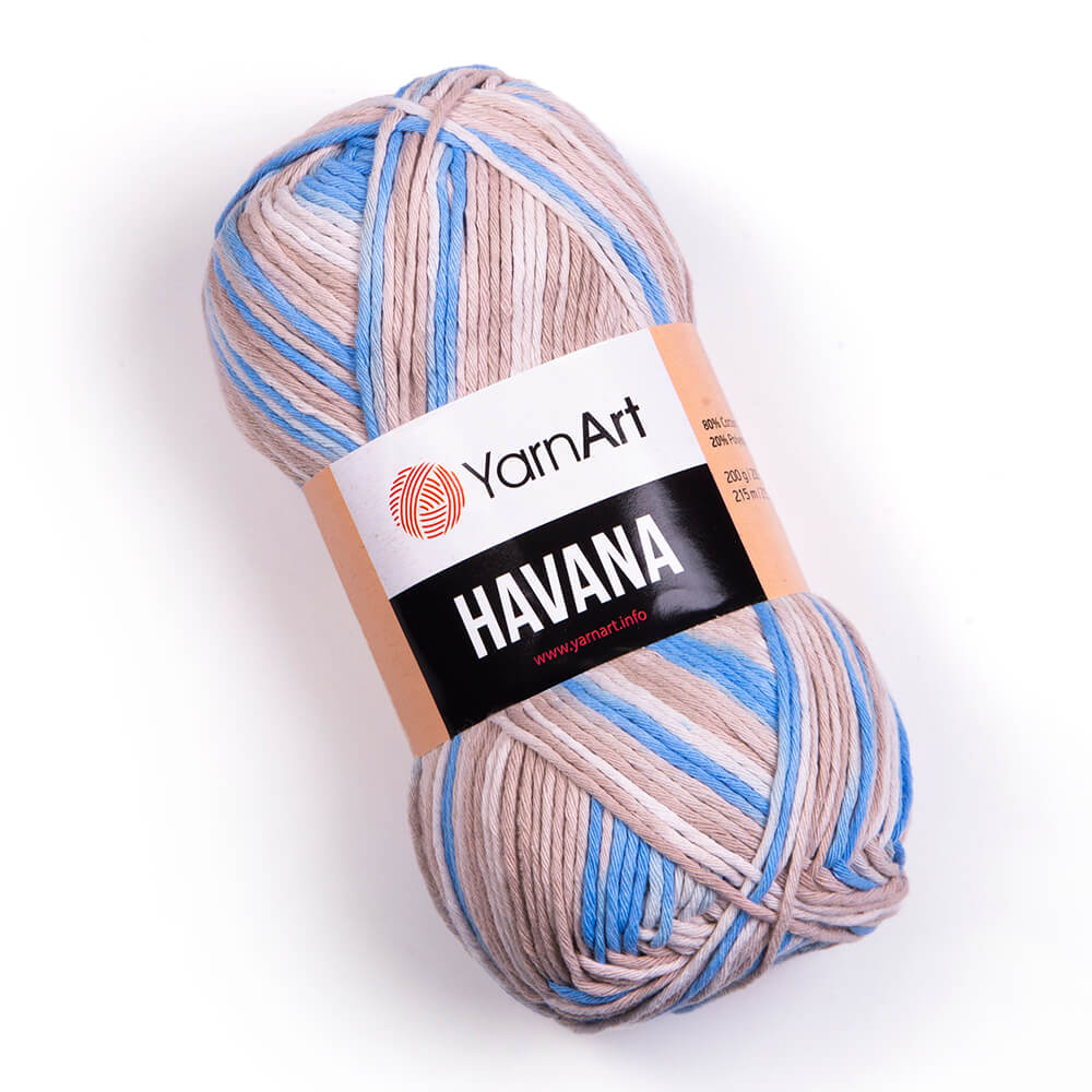 YarnArt Havana is a bulkyweight yarn made of 85% cotton and 15% polyester. It is a nice and soft yarn with a variegated colouring with different colours of threads in a yarn ball, harmoniously mixed. It comes in various colours that are suitable for seasonal knits. YarnArt Havana has a meterage of 215 meters per 200 grams, and it works well with needle sizes ranging from 6 to 7 mm and hook sizes from 5 to 6 mm. YarnArt Havana is a lovely yarn for making summer clothes such as blouses, skirts, dresses and accessories like bags, purses, hats and more. YarnArt Havana is a cotton and polyester blend yarn that will make your projects look colourful and comfortable.